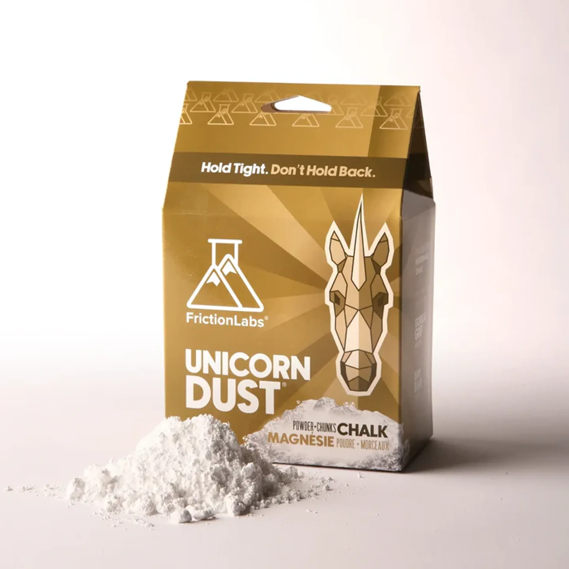 Friction Labs Unicorn Dust Fine Chalk is a high-performance climbing chalk designed to give climbers superior grip and control. Its ultra-fine powder combined with marble-sized nuggets provides the perfect balance of texture and smoothness, making it ideal for both indoor and outdoor climbing, as well as other grip-intensive activities like weightlifting and gymnastics.