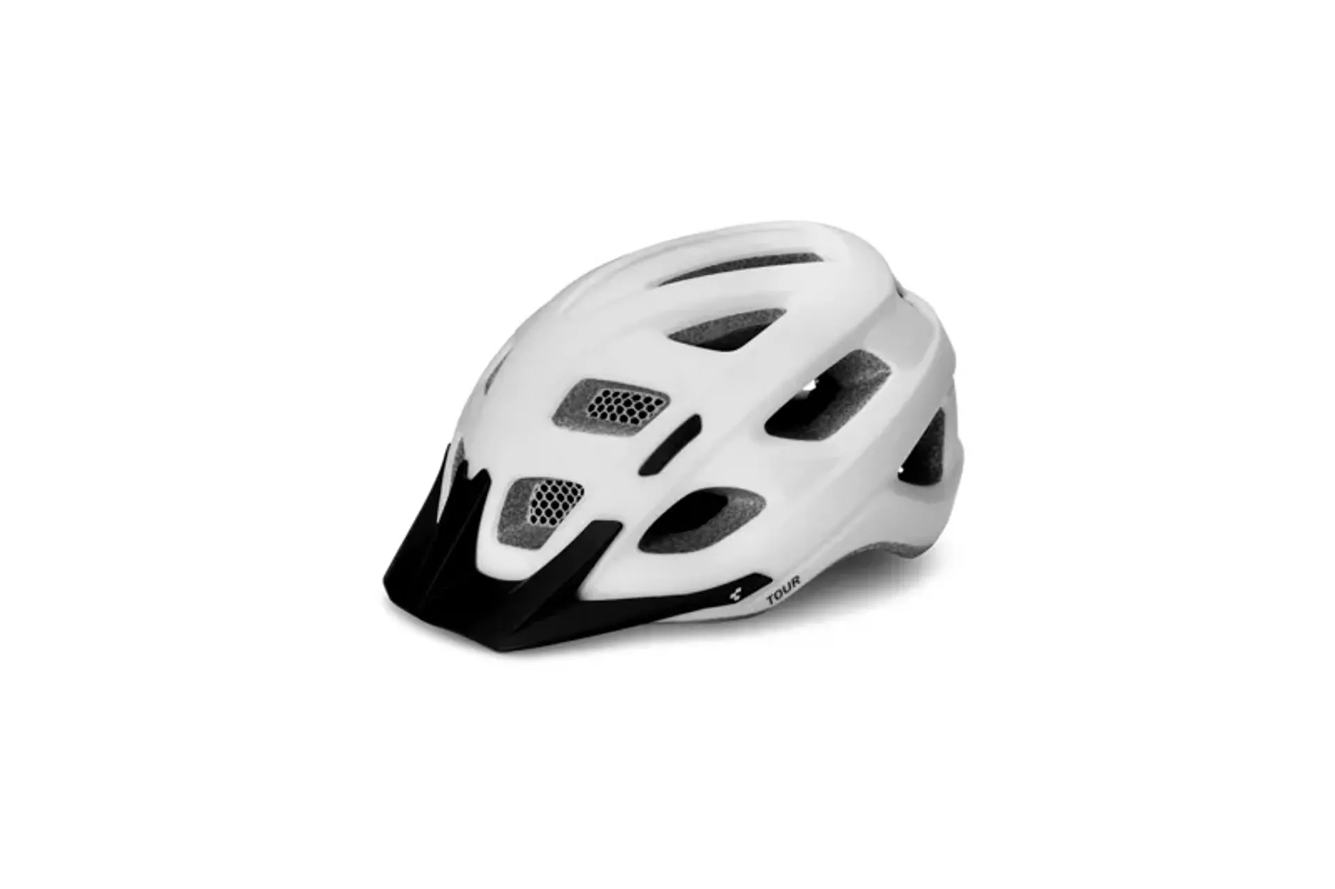 Trekking/city helmet, 20 ventilation holes, insect nets, removable visor, full-ring fit system, removable, washable fitpads, in-mould construction, matt finish